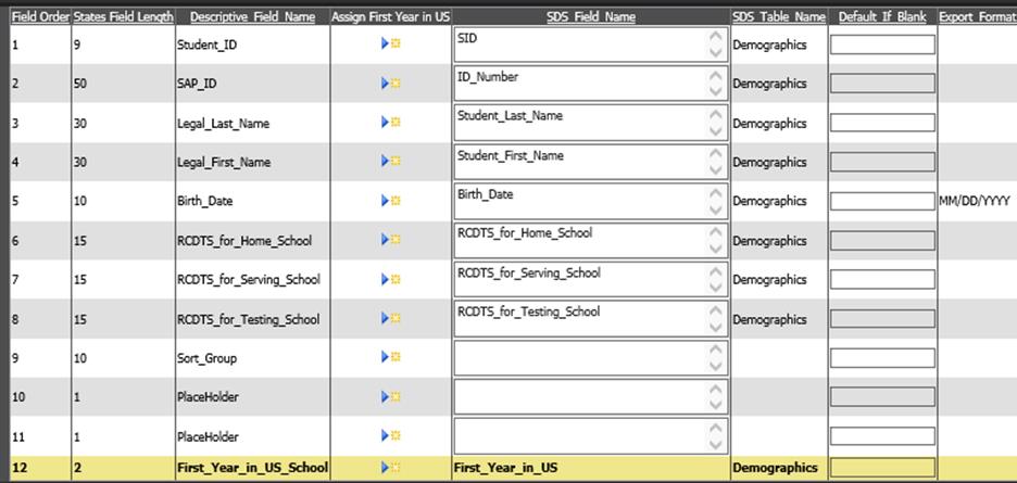 •In the column “default if blank”, optionally enter a value to be exported for any students who have no data in the selected field.