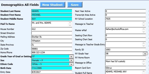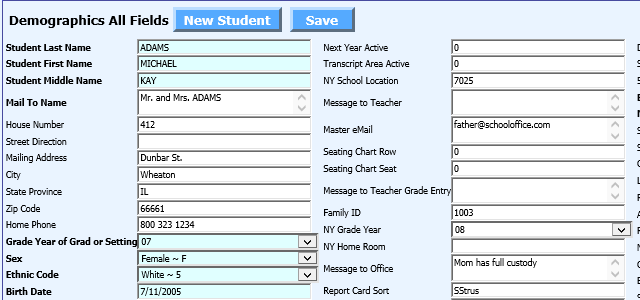 Selecting this option allows the user to retain the field values of the selected student when adding a new student. This is helpful when adding siblings to the system. The user can add one sibling and then select Activate Retain Values on Add and add the siblings retaining the values from the first sibling added and just editing fields where values for the siblings are different, ie. name fields, birthdate, grade year, etc.