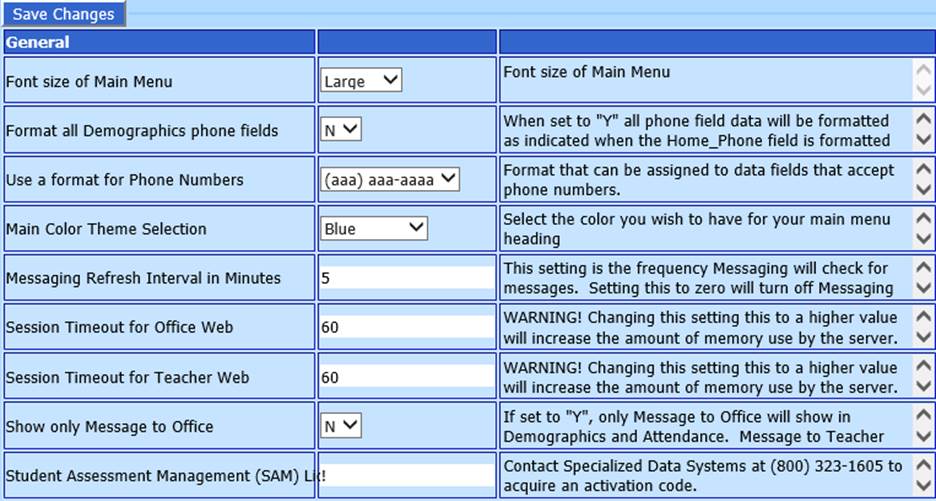 default value. Any of these can be changed to meet your needs.