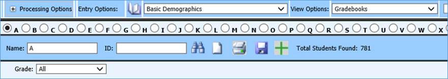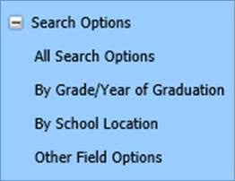 2. Click on Data Entry and Changes |Student Information |Processing Options |Search Options |By Grade/Year of Graduation.