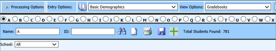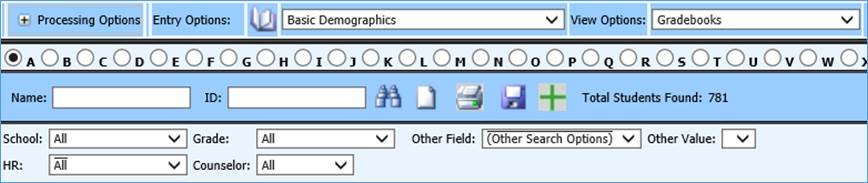 2. Click on Data Entry and Changes |Student Information |Processing Options |Search