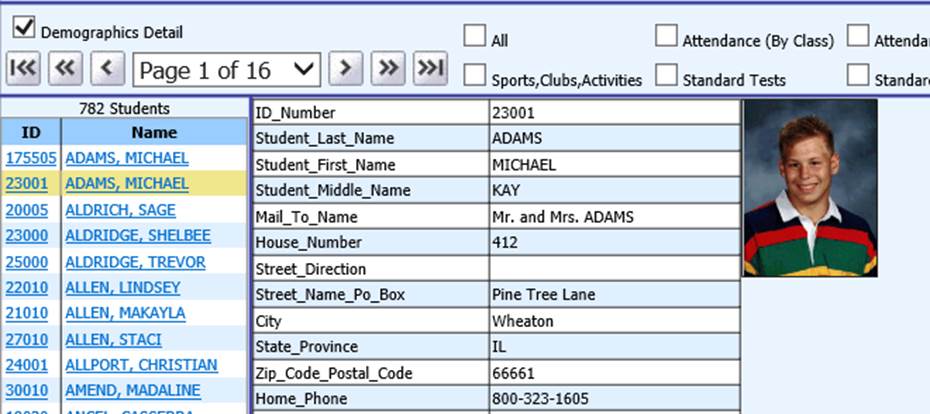 If you don’t have the Demographics Detail view check marked, check mark it to view the student photo along with the student’s basic demographic information.