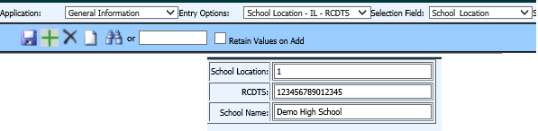o Note: A new feature has been added to pull the RCDTS code to the screen to a single RCDTS box. A school location must be selected for this to happen. Also, the RCDTS must be entered in the Master File and Code File Entry and Changes under General Information. The RCDTS can also be keyed in to the box on the screen and saved with the report if preferred.